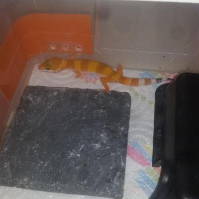 Né le : 13 juillet 2018 Sexe : Femelle Mutation : SHTCT het Bell poss het Radar Mutation de la mère : Nini (SHT) Mutation du père : Kéo (Sunglow Albinos Bell poss het Radar) Date de départ : 24 mars 2019
