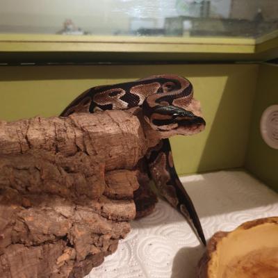 Son Histoire : Arrivé en provenance d'Hognose Concept, j'ai été séduit par le caractère de cette animal qui malgré le stress de l'espèce, elle était plutôt agréable. Ce python régius a appartenu auparavant à M. Cormier Gaetan qui était un éleveur très aprécié dans le milieu de la terrariophilie, le nom Enola est un hommage qui lui est rendu car c'est également le prénom de la fille de ce grand éleveur.